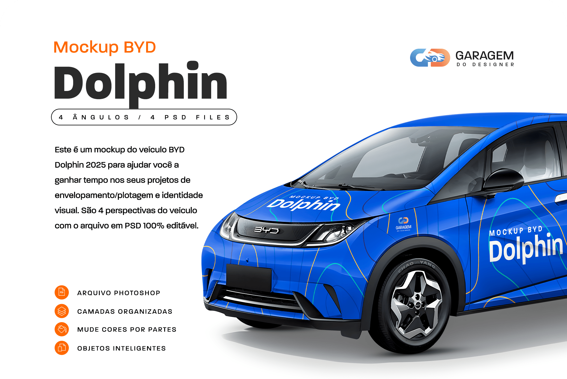 Mostre seu projeto de forma profissional e impressione seus clientes com o Mockup BYD Dolphin. Este mockup ajuda você a economizar tempo em trabalhos de envelopamento, plotagem e identidade visual, proporcionando qualidade e precisão para seus designs. Confira as informações e vantagens do mockup: