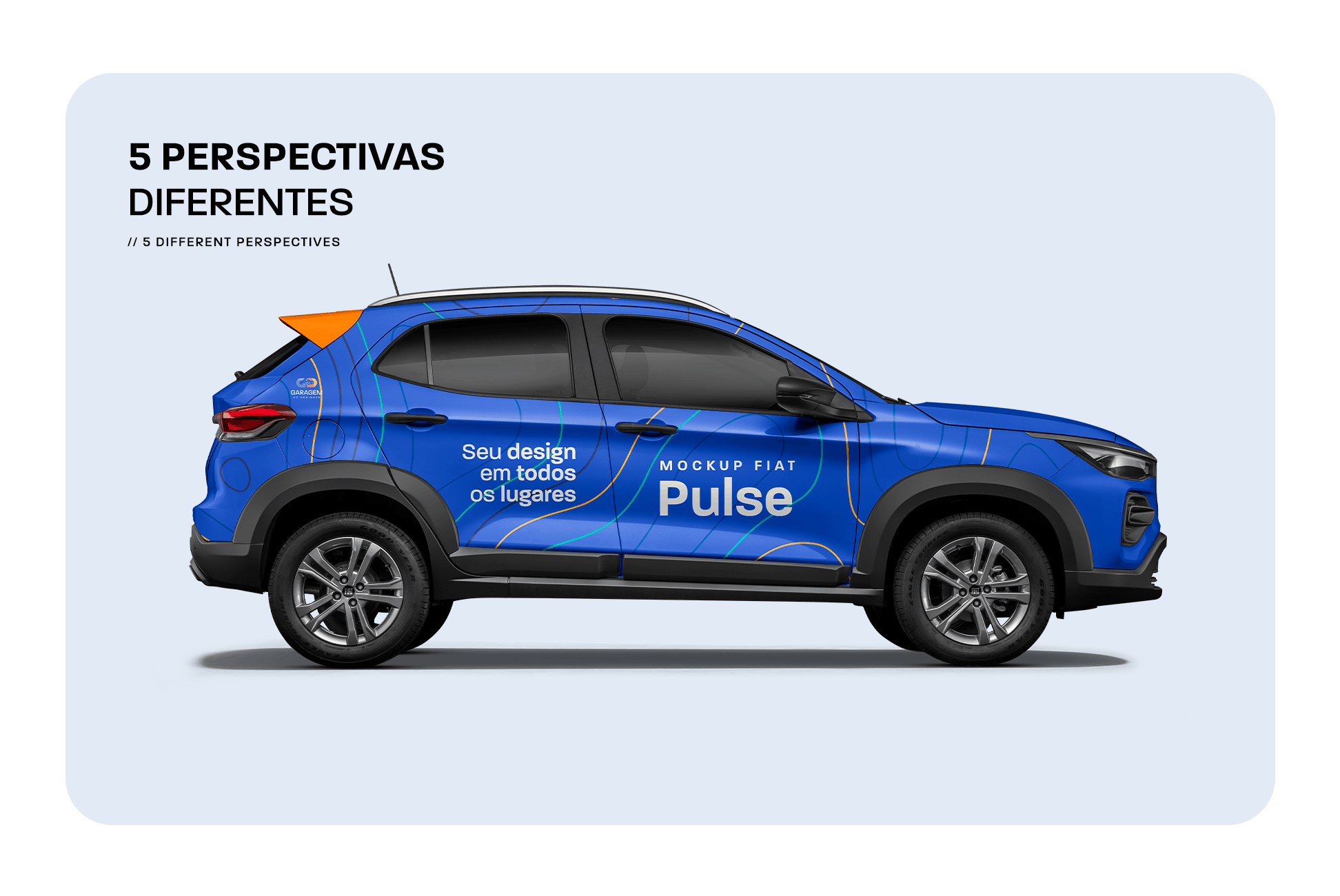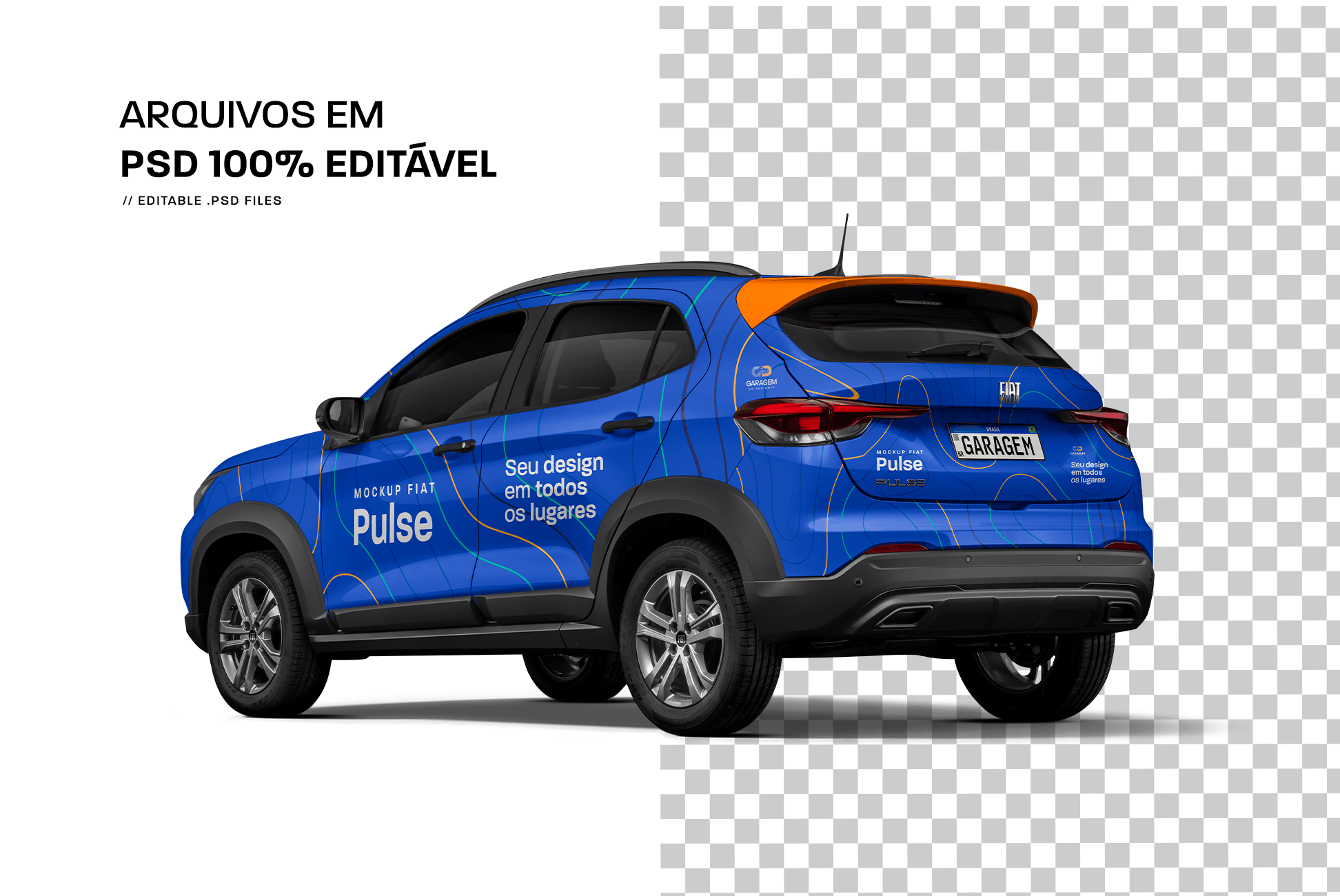 Mostre seu projeto de forma profissional e impressione seus clientes com o Mockup Fiat Pulse, desenvolvido especialmente para designers, agências e profissionais que trabalham com plotagem veicular, envelopamento e identidade visual automotiva. Este mockup foi criado para oferecer realismo, precisão e clareza na apresentação dos seus layouts, facilitando a visualização do projeto final antes da produção.