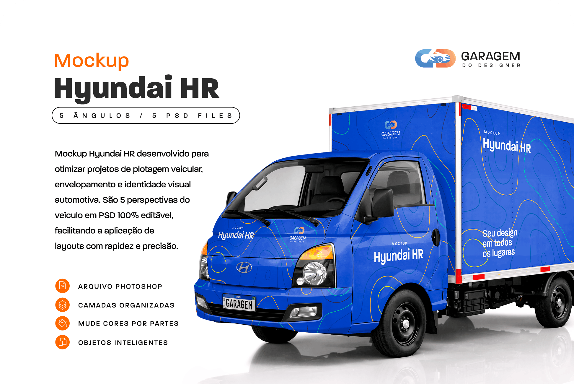 Este mockup é ideal para apresentações comerciais, propostas para clientes, portfólio profissional e materiais de divulgação, oferecendo uma visualização clara e profissional do projeto final. Por ser desenvolvido especificamente para o Mockup Hyundai HR, ele não é compatível com outros modelos.