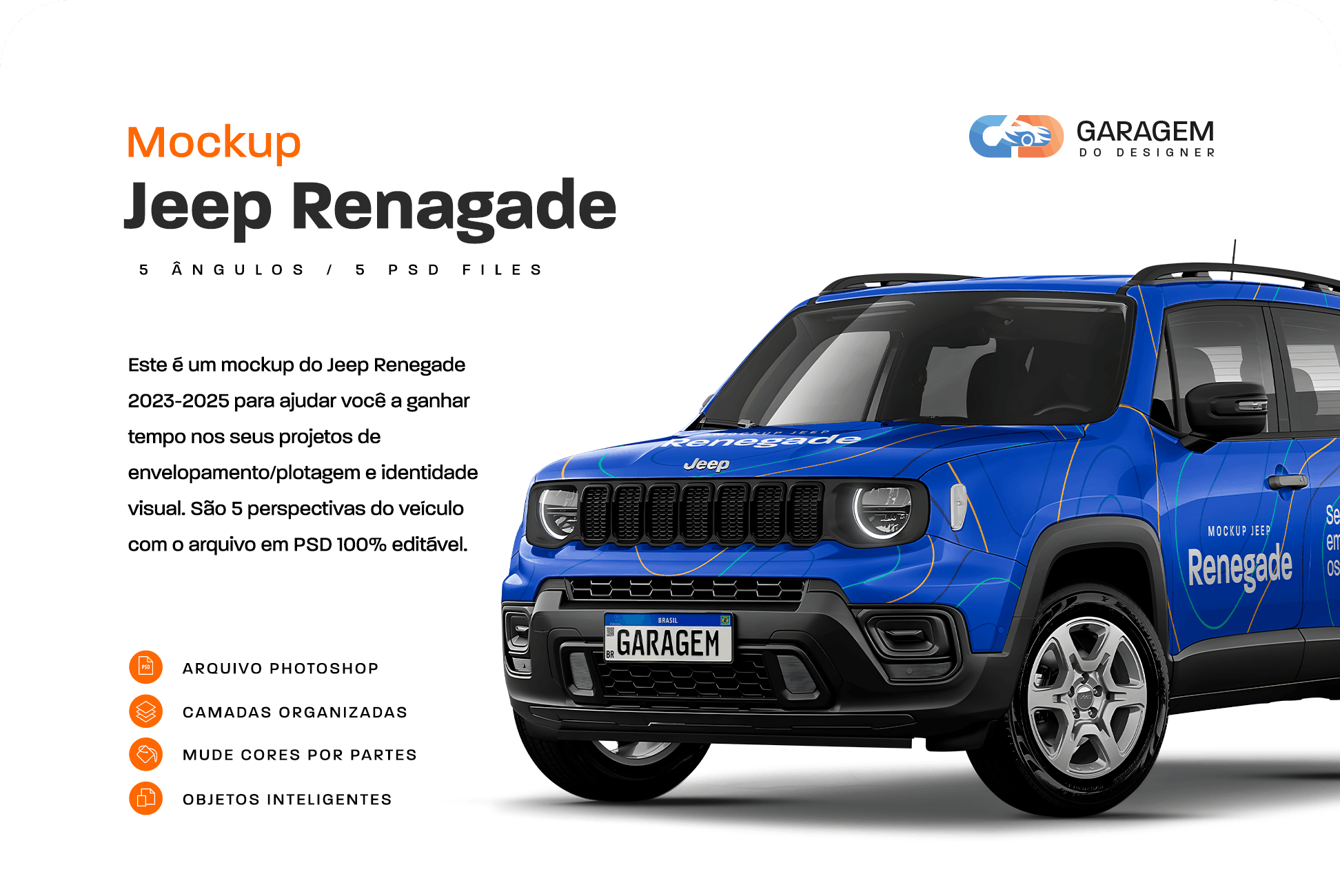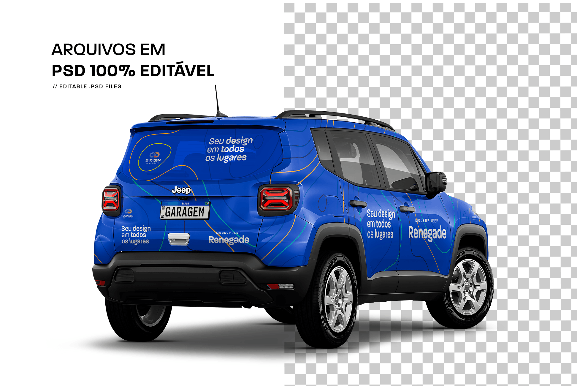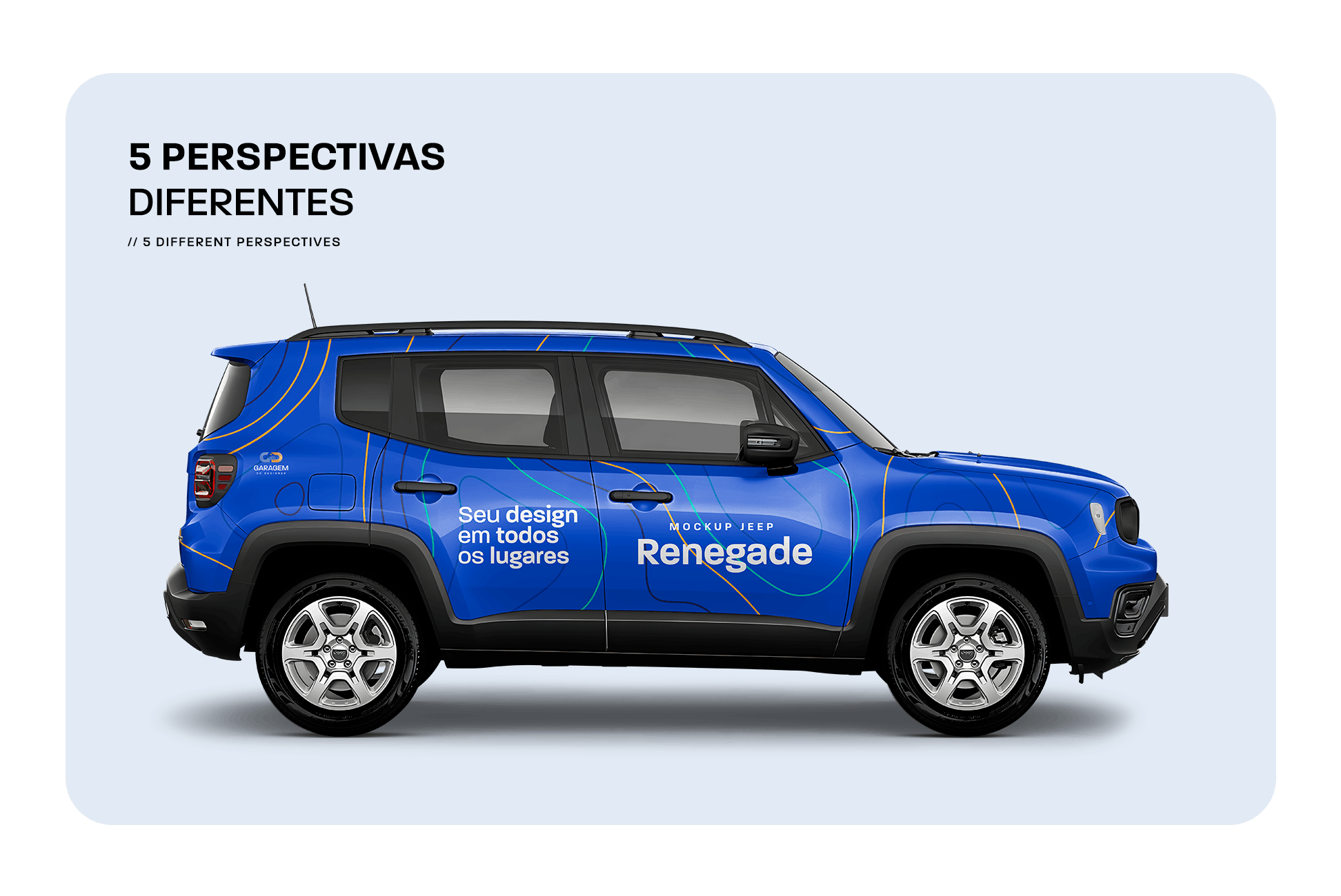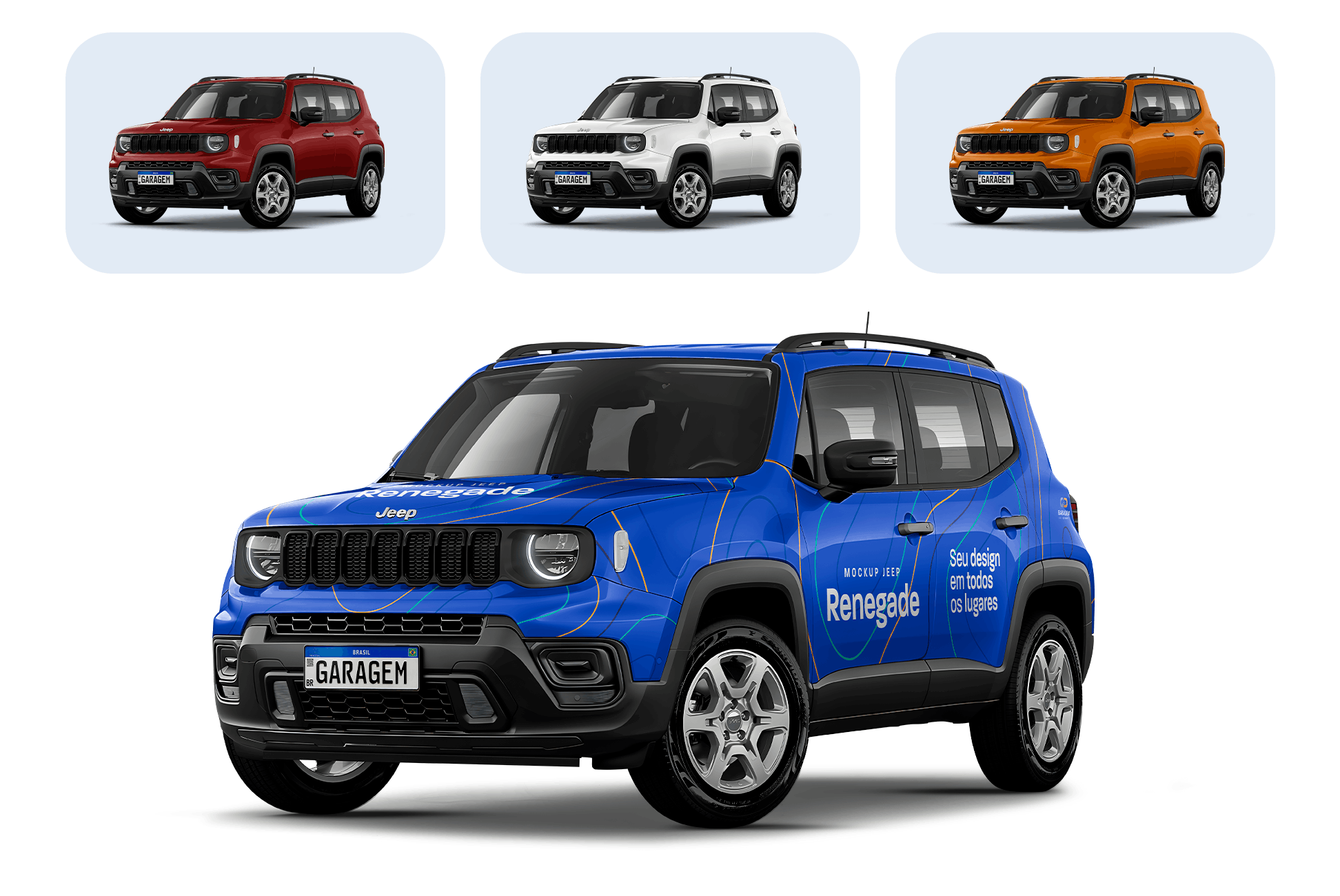 Este mockup é ideal para apresentações comerciais, propostas para clientes, portfólio profissional e materiais de divulgação, oferecendo uma visualização clara e profissional do projeto final. Por ser desenvolvido especificamente para o Jeep Renegade, ele não é compatível com outros modelos.